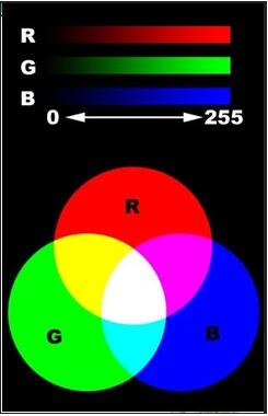 混色設定(加法混合):RGB是從顏色發光的原理來設計定的,通俗點說它的顏色混合方式就好象有紅、綠、藍三盞燈,當它們的光相互疊合的時候,色彩相混,而亮度卻等于兩者亮度之總和(兩盞燈的亮度嘛?。?,越混合亮度越高,即加法混合。有色光可被無色光沖淡并變亮。如藍色光與白光相遇,結果是產生更加明亮的淺藍色光。知道它的混合原理后,在軟件中設定顏色就容易理解了。紅、綠、藍三盞燈的疊加情況,中心三色最亮的疊加區為白色,加法混合的特點:越疊加越明亮。紅、綠、藍三個顏色通道每種色各分為255階亮度,在0時“燈”最弱——是關掉的,而在255時“燈”最亮。當三色數值相同時為無色彩的灰度色,而三色都為255時為最亮的白色,都為0時為黑色。