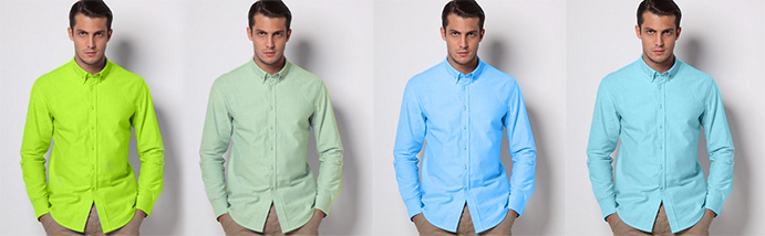 下圖中一名男子身著四款不同顏色的襯衣,我們來對比一下哪款顏色看起來更高檔;