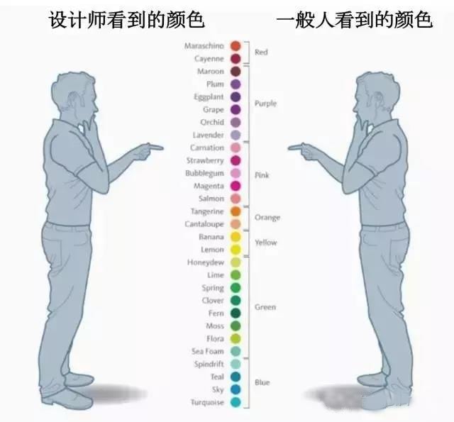 色彩設計師,其眼中的色彩與普通人看到的是不一樣的,正所謂10個設計師當中有9個好“色”,因為色彩設計師對于色彩的關注點與消費者的關注點是有區別的。一個經驗熟練的色彩設計師,在拿到一個顏色后,能很快的說出這個顏色的特征,甚至大概的色號區間(如下圖),這種技能可能是一般人get不到的。