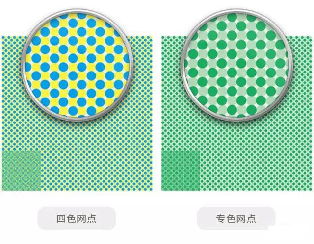 任何一種顏色都可以轉換成專色,上圖是四色合成出的綠色與專色綠的對比,不通過四色合成色彩,而是專門用一種特定的油墨來印刷,專色油墨覆蓋性強,具有不透明的性質,在色彩方面也較CMYK更加艷麗。當然從成本來說,專色印刷費用也會更加高昂一些。