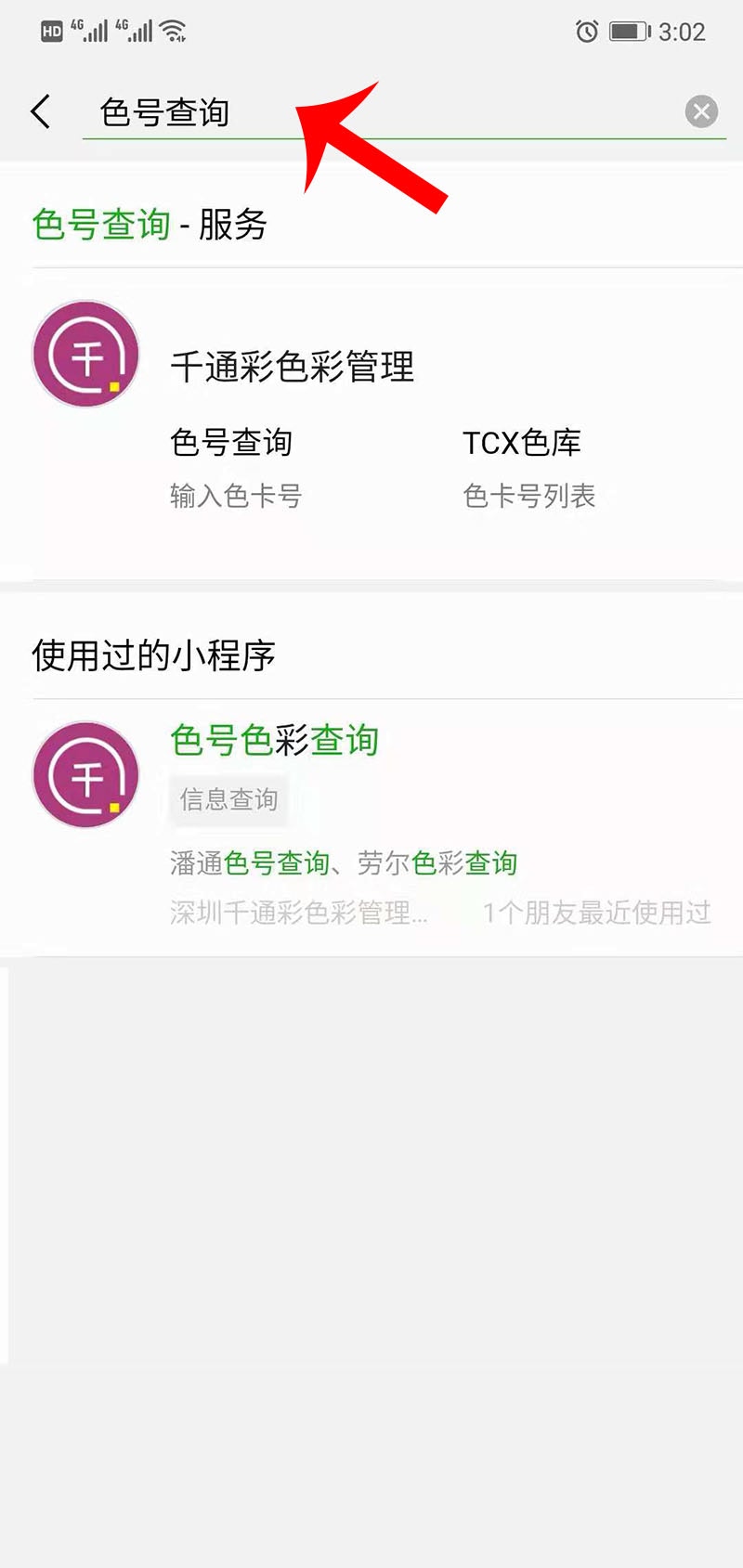三、在搜索框中輸入:色號查詢,點擊查詢可以看到搜索結果;