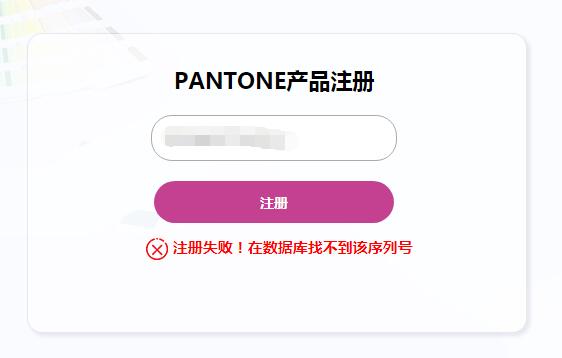 五、在保證輸入的Pantone序列號是正確的情況下,如果您注冊時出現(xiàn):注冊失敗!在數(shù)據(jù)庫中找不到該序列號;說明您的PANOTNE產(chǎn)品是盜版的產(chǎn)品;