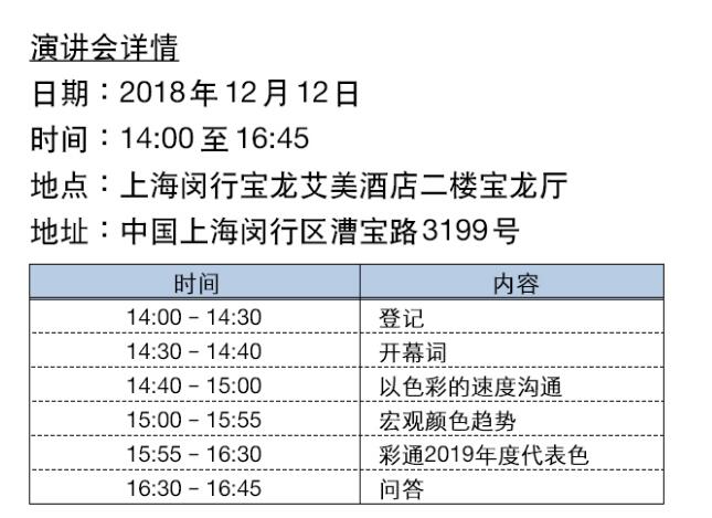 如果您想參加2019年度代表色發布會,請盡快聯系報名:
