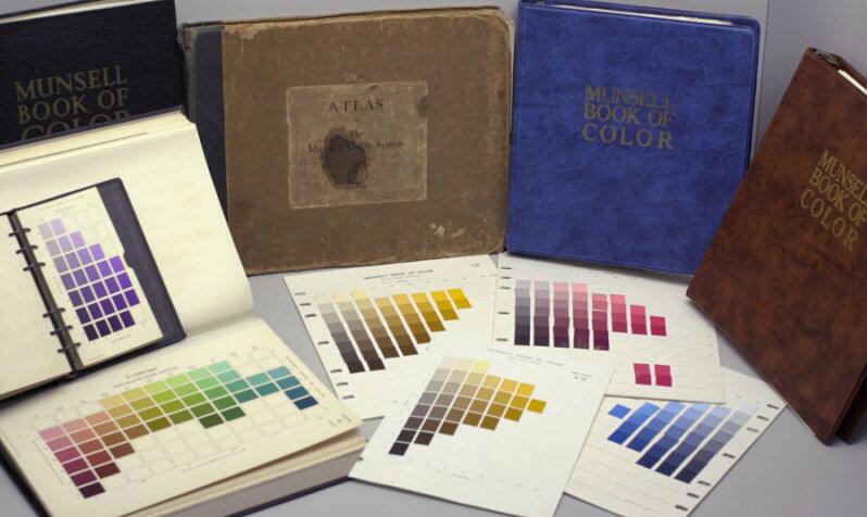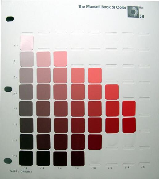 在沒有計算機的時候,做成色卡本,munsell色卡是這樣的: