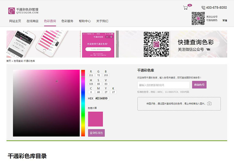 千通彩色庫,是一個強大的實用性高的色彩管理系統,這里集合了國際上所有知名品牌色卡的色號,目前色庫目錄中國際標準色號高達百萬,分別有:美國PANTONE潘通(彩通)色號、德國RAL色號、NCS色號、munsell色號、昂高色卡號等等,在線查詢國際標準色號可謂是非常方便,其實,千通彩色庫除了能在線快速查詢色號外,最近新升級了一個功能就是能根據國際標準色號在線生成配色方案,該功能的實現可大大提高設計師配色師們的在線配色水平,我們詳細來分析一下如何使用該配色方案生成器;