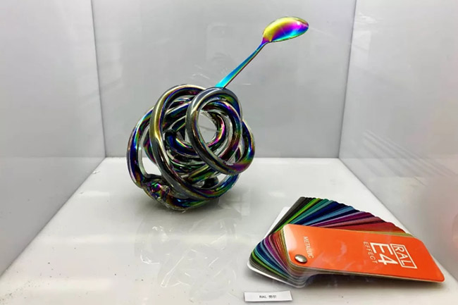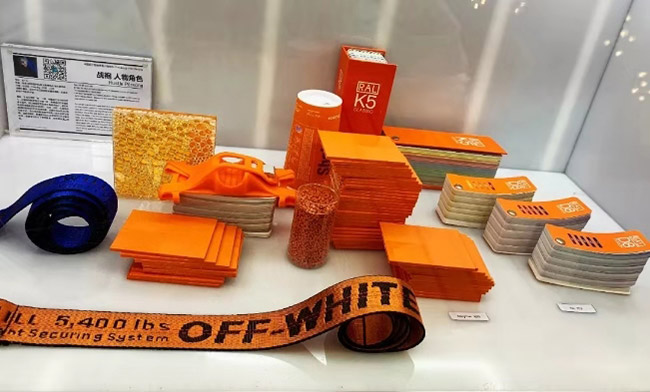 德國材料生產商科思創Covestro以工業設計中常用的聚碳酸酯為材料,為四大趨勢制作了流行色板,其中包括熒光、金屬等不同特殊質感,并標注德國勞爾RAL色彩編號。