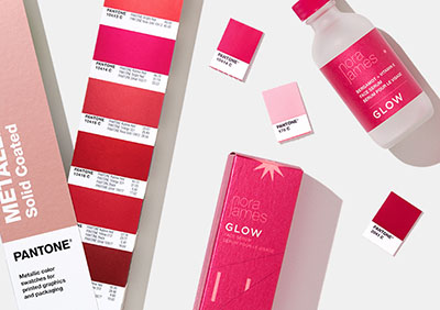 在21世紀,不同的顏色光澤表面和金屬顏色飾面光澤反映了內部包裝產品所帶來的無形承諾,通常高級品對應的產品包裝盒呈現出來是一種高級感,這次的調色板占據中心舞臺的是兩個大膽挑釁的色彩, 一個調情的粉紅色和一個感性的紫紅金屬色,與時尚精致的深黑色組合為產品包裝增添了戲劇性,閃爍的銀色金屬色作為點綴色則注入了時尚的現代感。