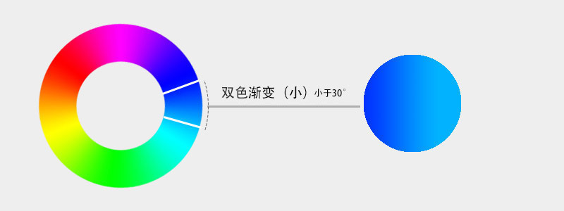小漸變就是在色環上,小于30度的兩個色相之間的漸變,專業術語就是同色系漸變,這種漸變色跨度變化很小,比較保守,容易控制、實用頻率很高。