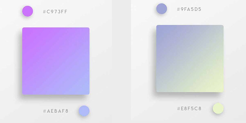 除了雙色搭配,還有多色純色搭配以及多色漸變色搭配。對于新手而言,剛開始設計畫面中色彩不宜過多,色彩越多,新手越難把控全局協調性。先從純色單色開始,再到純色多色組合,最后過度到漸變色組合搭配,逐漸練習,久而久之,收獲定是滿滿的。