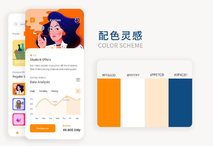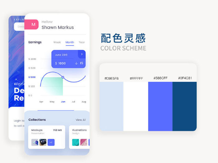 好看的配色方案,是很多設計師追求的,通過一些成功的案例來激發自身的靈感不失為一種方法,經典藍色需要好看,但是在設計過程中,一定要注意使用搭配的配比,使用面積不能太多也不能太少,需要根據項目主題來確定哦。