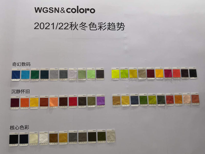 春去秋來(lái),2021/22秋冬色彩趨勢(shì)也是服裝面料設(shè)計(jì)師及廠商非常關(guān)注的地方,在展會(huì)中,coloro同時(shí)向大家展示了未來(lái)一兩年的秋冬色彩趨勢(shì)將圍繞幾個(gè)主題展開,譬如:奇幻數(shù)碼色彩,沉靜懷舊色彩等,其中核心色彩中更多的是一些中性色彩,可滿足各行各業(yè)的色彩需求。