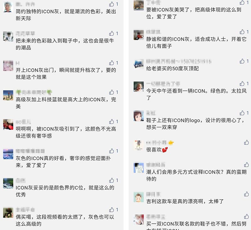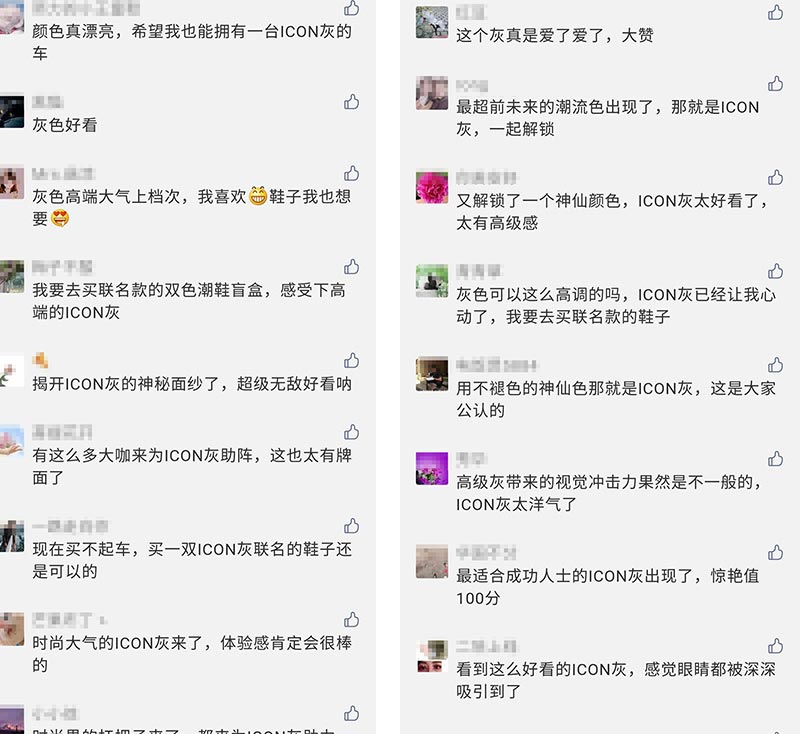 為將ICON灰引入更多領(lǐng)域,吸引更多消費(fèi)者關(guān)注,ICON還聯(lián)合一些國(guó)潮牌鞋業(yè)推出ICON灰聯(lián)名雙色潮鞋盲盒,ICON灰作為流行色深受當(dāng)代年輕消費(fèi)者喜愛(ài),此次跨界合作,在一定程度上可以很好圈粉年輕用戶,帶動(dòng)全民種草ICON灰。目前看來(lái),ICON灰已經(jīng)不僅僅是代表一款車型的配色,由于色彩本身充滿的魅力,使得其適用于很多領(lǐng)域,成為一種潮流趨勢(shì)。