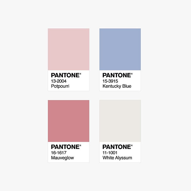 下面這個案例使用的pantone色號有13-2004、15-3915 、16-1617、11-1001,紫藍色與粉色相搭配,環境中心顏色雖未粉色,但紫藍色的存在也是畫面的亮點,室內整體營造的環境氛圍給人一種獨特的高級感,暖暖的、輕盈的。