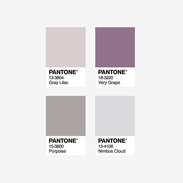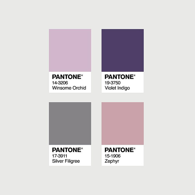 淡紫色調,加入多種不同明度的灰色系色彩,會是什么樣的感覺呢?下面這個案例,非常的有個性,紫色在環境氛圍中成了搶眼的存在,多了一份神秘感。案例應用的pantone彩通色號分別有:13-3804、18-3220、15-3800、13-4108;