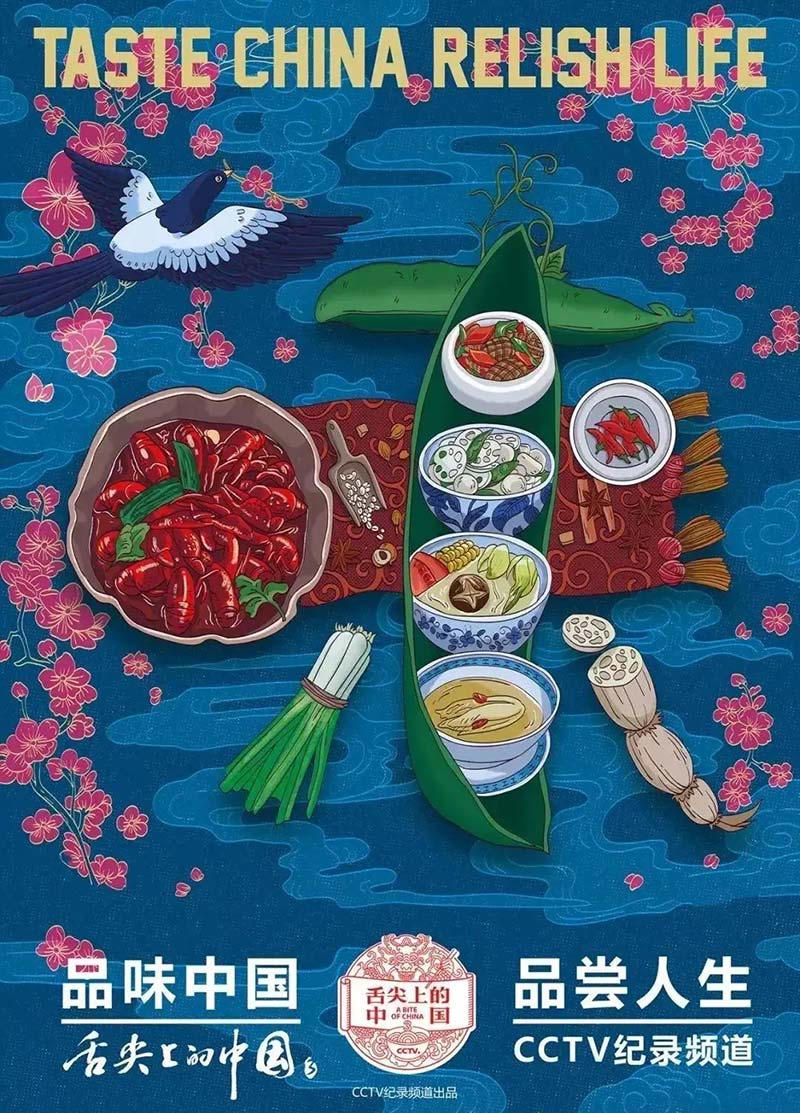 中國人熱愛美食,是源于對生活的熱愛,立足當下,紀錄中國。該紀錄片的海報沿用流行的插畫風,使用千通彩傳圖配色功能,可以發現海報宣傳畫面多以中國紅暖色系為主色調,延續一貫濃濃的中國傳統色彩,以中國獨特的文化符號詮釋了天人合一的東方哲學,也展示著中華民族的百味人生。