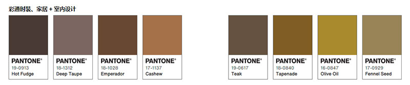 根據(jù)棕色的特性,PANTONE色彩研究團(tuán)隊(duì)整理了這樣的兩組調(diào)色板,希望能為家居室內(nèi)設(shè)計(jì)的伙伴們帶去些許的創(chuàng)意靈感,色號(hào)分別是19-0913、18-1312、18-1028、17-1137;或者是19-0617、18-0840、16-0847、17-0929;