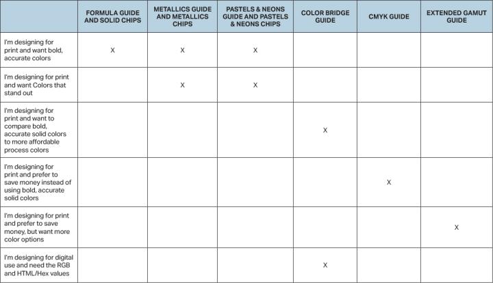 CMYK 指南旨在為您提供更多選擇。CMYK 指南是一個完全獨立的色彩庫,使用它不是為了取代 PMS,而是為設計流程提供更多選擇。