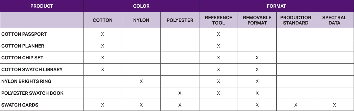 為了確保最佳的目視符合效果,我們建議使用最接近您終端用途材質的色彩版本。我們建議所有布料色彩應用皆使用我們的紡織棉布版產品(TCX)。因為每種材質吸收色彩的效果不同,同樣的顏色在棉布、塑料及漆面紙材上可能會略微變化。
